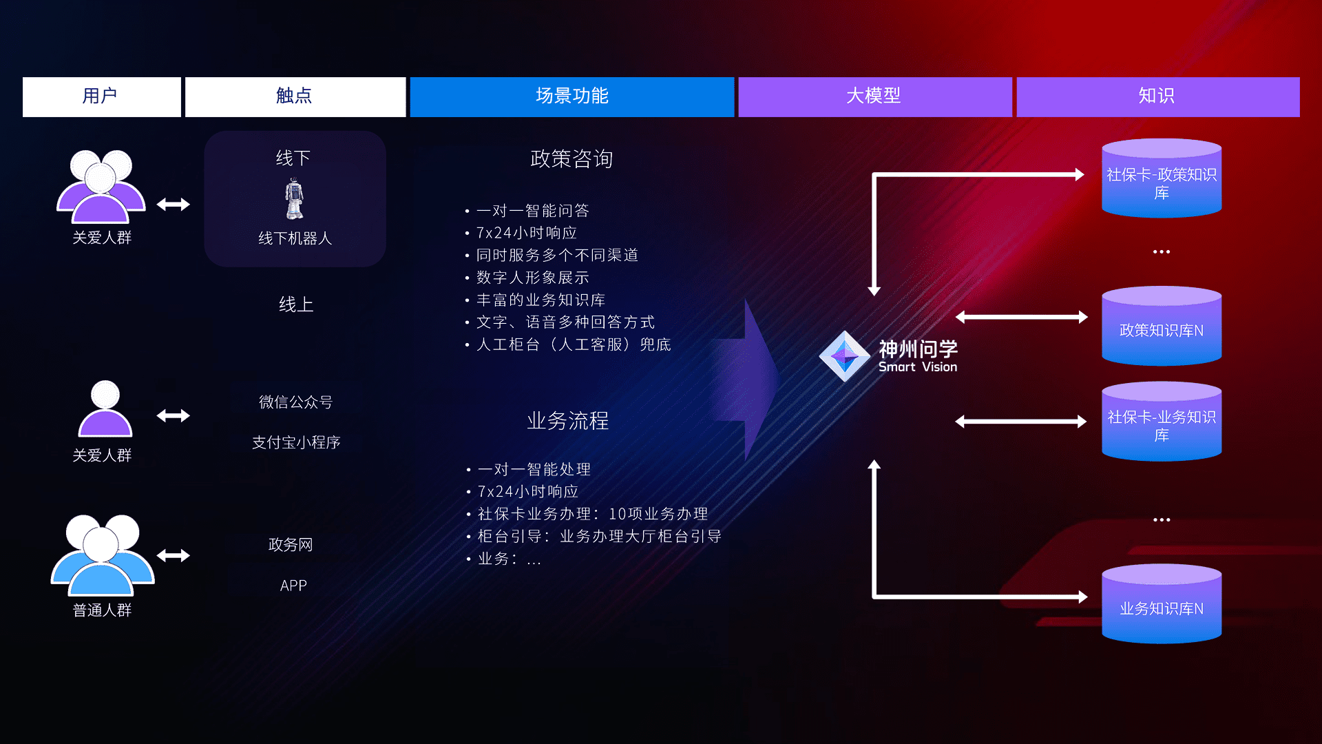 在服务大厅部署客服机器人,,,在线上应用和小程序配置客服数字人,,,724小时为群众解答常规问题,,客服机器人无法处理的,,,,转现场人工处理。。